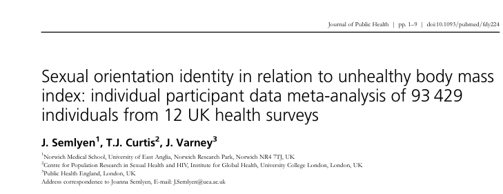 Our new paper with out now on #sexual #identity and its association with unhealthy #BMI extends findings on sexual minority #health #disparities in UK.